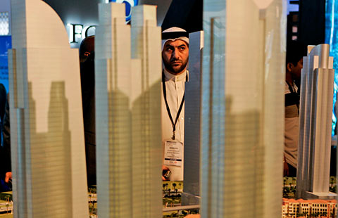A logo for Salesforce Inc, reflected in a window in downtown San Francisco, California, on December 29, 2014. [Photo/IC] |