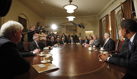 Then he turned to Paulson to give the group an update on the markets, which closed before the meeting began. The president then opened up the discussion to questions and comments from nearly everyone around the table.