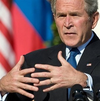 US President George W. Bush speaks during a press conference in the Rose Garden of the White House in Washington, DC. US administration officials and lawmakers held urgent negotiations Saturday on an unprecedented 700-billion-dollar plan to rescue the financial sector from the worst crisis since the Great Depression. [Agencies]